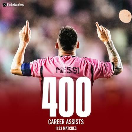 Argentine forward Lionel Messi has added yet another remarkable achievement to his legendary career, reaching 400 assists in professional football, a feat unmatched in the modern game.