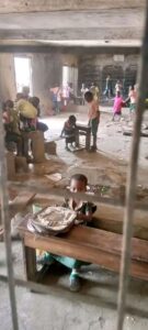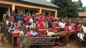 A file photo of students reportedly sitting on bare floors to learn at a public school in Umunneochi before Senator Kalu’s intervention.