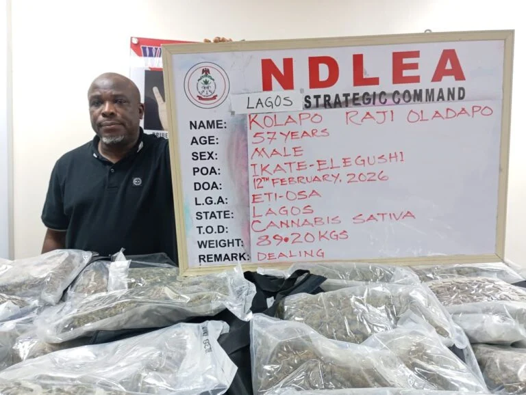 The statement partly read, “The 57-year-old drug kingpin was arrested at his Safe Court Apartment residence in Ikate, Lekki, Lagos on Thursday, 12th February 2026, after sustained surveillance soon after his return from the United Kingdom.