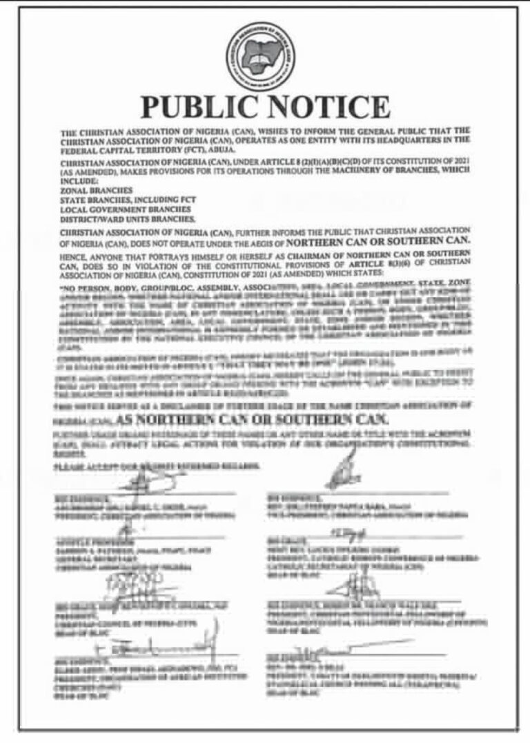 The national leadership of the Christian Association of Nigeria (CAN) has formally disowned...